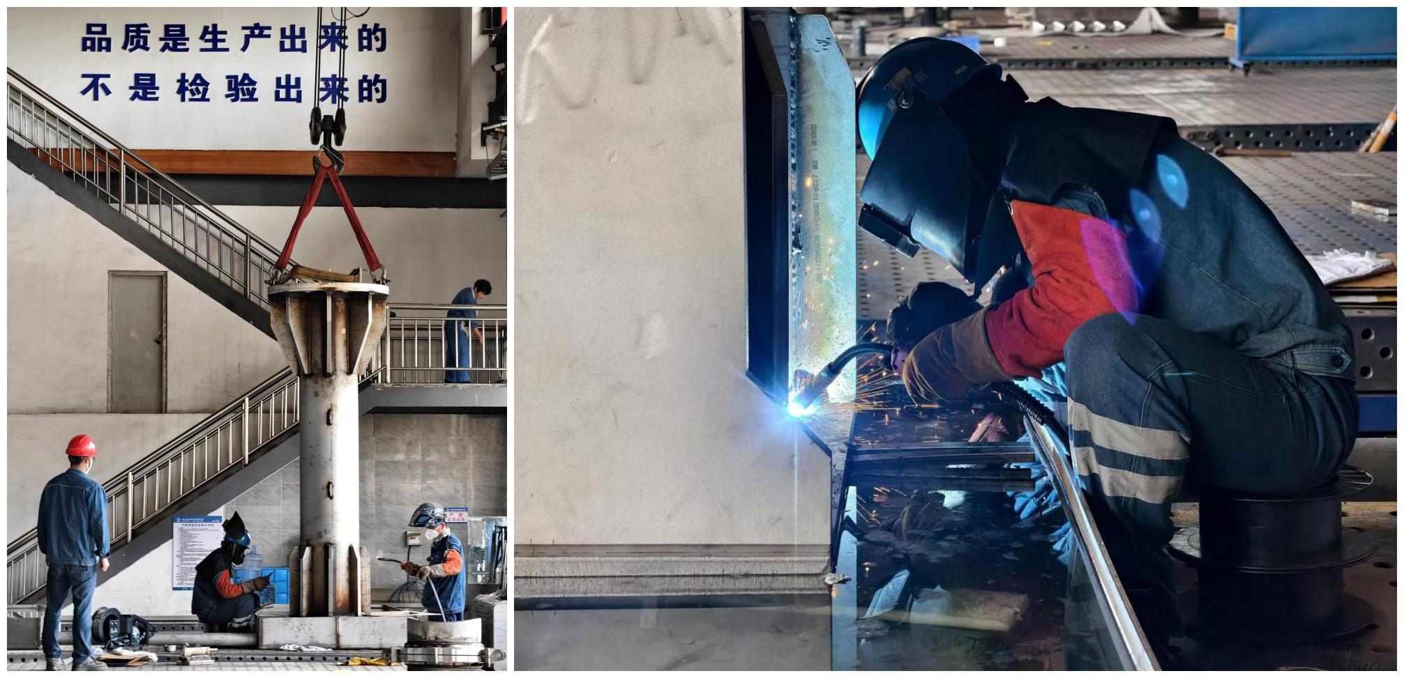 四季度杜瓦項目重點任務為封頭壓制及預組裝、支撐腿制造及封頭組焊、裙邊段組焊等。面對四季度決戰時刻下高強度、重任務的挑戰,團隊全力以赴拼擔當、講奉獻、講團結,主動干、全力干、加快干,凝聚出堅不可摧的強大意念,敢干敢拼、齊心奮進,奮力“保節點、保質量、保產品”,堅定不移完成年度既定目標,為明年杜瓦底座總成組焊打下堅實基礎。