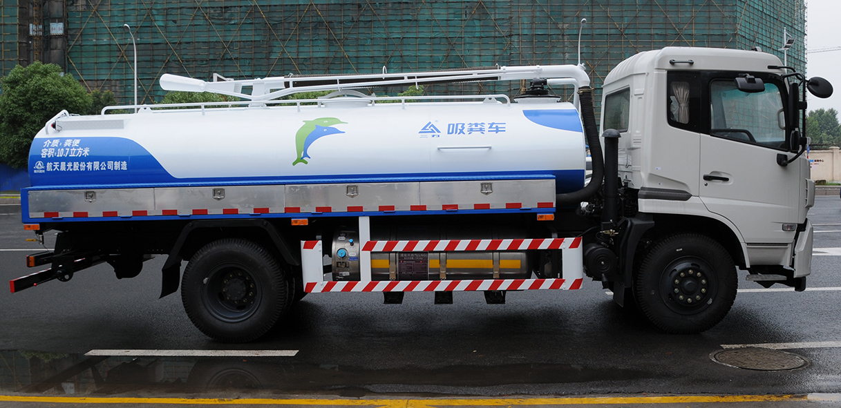 CGJ5160GXE5NG型吸糞車是我公司根據市場新能源需求而開發的LNG新能源吸糞車。該車通過電動取力器帶動真空泵工作,對罐體內部抽真空,利用大氣壓力將化糞池或污水池內的介質抽吸至罐體中。因是通過抽真空方式實現,介質不通過真空泵。排放時可打開排放閥自流排放,或者使用真空泵對罐體內加壓,實現壓力排放,加壓時可向較高處進行排放。